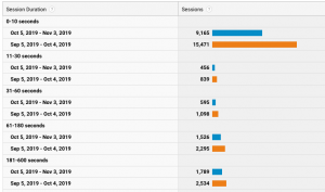 Engagement is measured in time spent on a website, how many pages were visited, and how much time was spent on each page. The vast majority of hits they had on their website, 2,500 hits, were 10 seconds or less. Now, people can't do a whole lot in 10 seconds other than maybe make a first impression or be a robot and just kind of scan a page. But the ones that really matter are the 375 people that spent 30 seconds to 600 seconds, which is half a minute to 10 minutes. That's where they get the biggest difference because those are people who are paying attention to their content, engaging with and consuming the content they're putting out there, and they're getting the best return on investment with that.